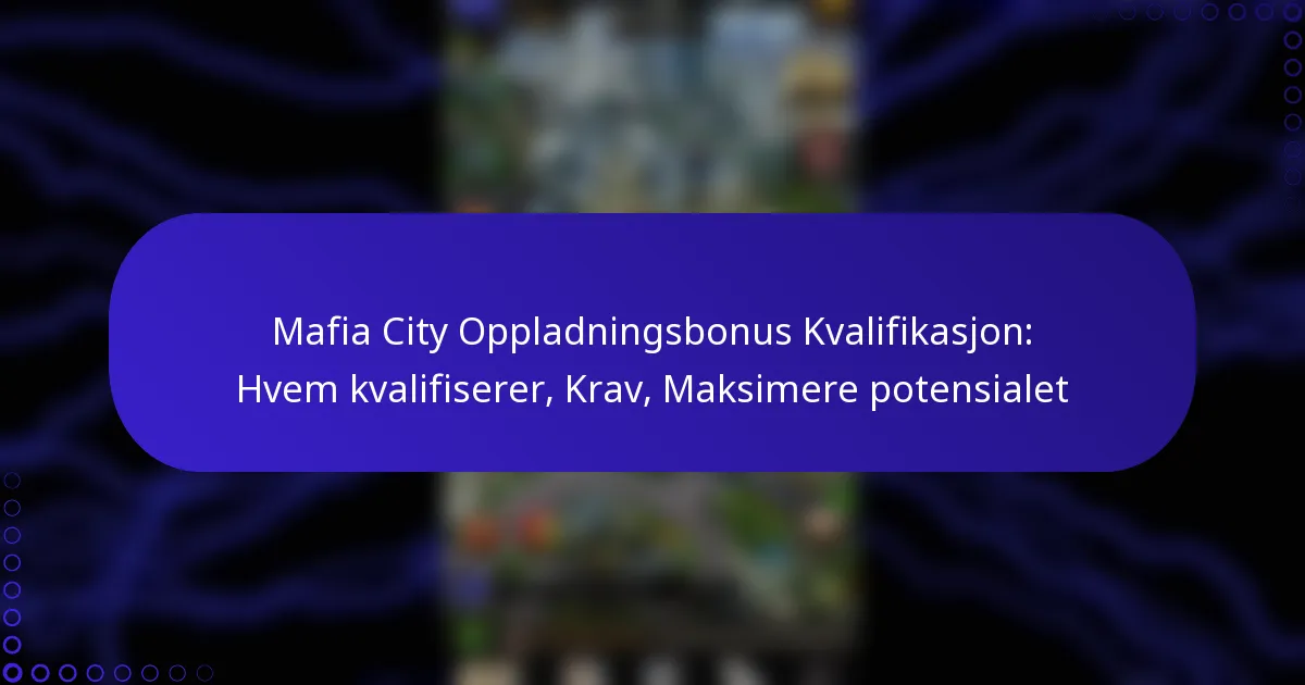 For å kvalifisere seg for oppladningsbonuser i Mafia City må spillere vanligvis gjøre et minimumskjøp av spillvaluta. Spesifikke kampanjer kan ha sine egne kriterier, som tidsbegrensede tilbud eller krav om å kjøpe visse pakker. Spillere bør sjekke detaljene for hvert tilbud for å sikre at de oppfyller kvalifikasjonskravene.